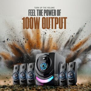 A PREMIUM 5.1 Pro 100W Home Theater with Included Subwoofer deep experience, rich bass to make movies and music truly come to life with Powerful full range drivers