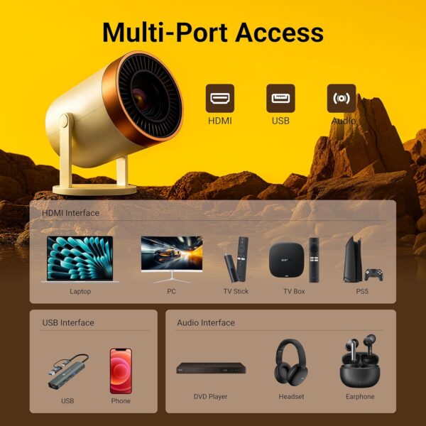 Smart Projector with Built-in OTT Apps – Access your favorite streaming platforms directly from the projector including YouTube, Netflix, Prime Video, Disney+ Hotstar and more.