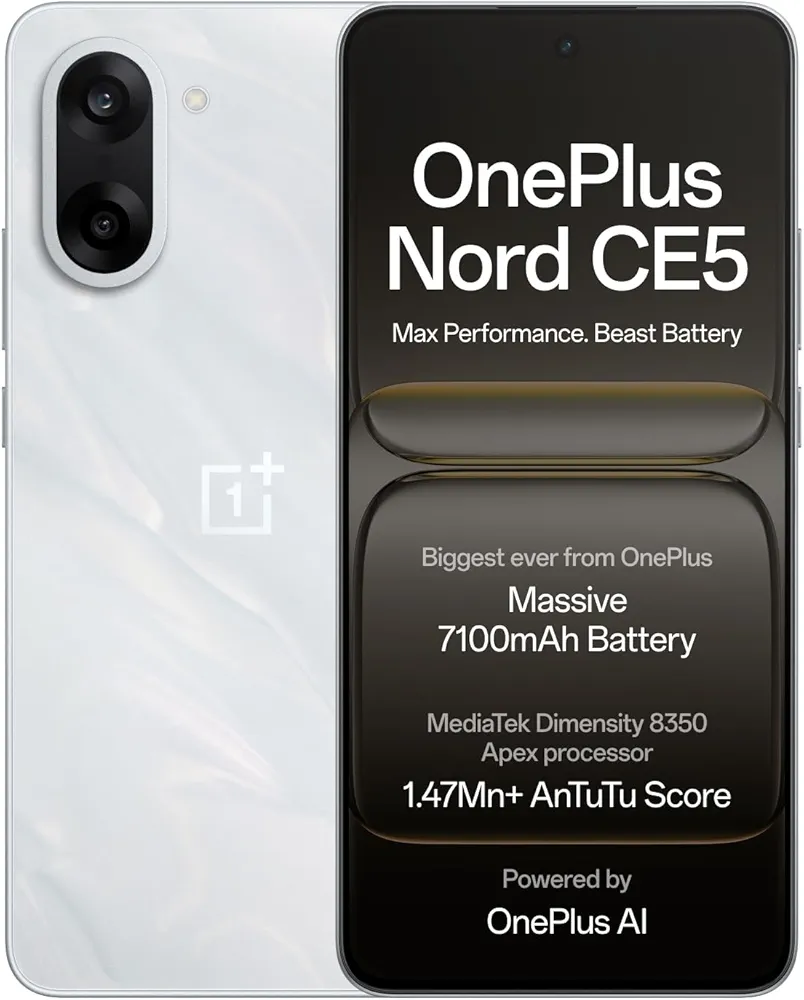 OnePlus Nord CE5 | Massive 7100mAh Battery | MediaTek Dimensity 8350 Apex | Powered by OnePlus AI | 8GB + 128GB | Marble Mist